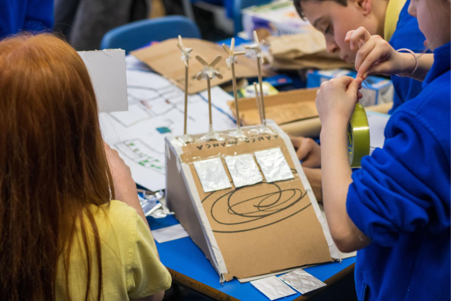 We bring top designers from diverse fields into primary classrooms for an extended period to co-create innovative, eco-friendly design concepts with nine and ten-year olds